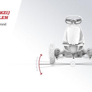De Rally Pearl is uitgerust met het BFR-systeem. Met het BFR-systeem kan je vooruit rijden, remmen, maar ook achteruit rijden door simpelweg voor- en achteruit te trappen. De Rally is uitgevoerd met 4 luchtbanden waarmee je geruisloos en comfortabel kan rondrijden. Samen met de schommel-as maakt dit de skelter stabiel en veilig.